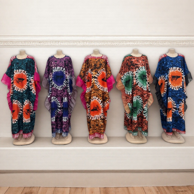 Wholesale New Fashion Large Size Elegant African Summer Printed Women's Round Neck Dress