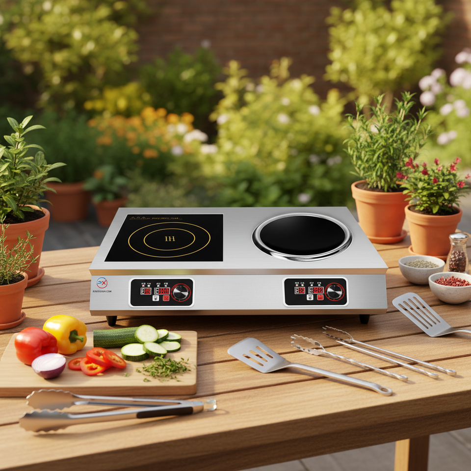 Fornello a Induzione Elettrico Portatile Commerciale Doppio da 3500W, Nuove Innovazioni, il Più Venduto, con Sensore, per Wok da Tavolo, di Produzione Cinese
