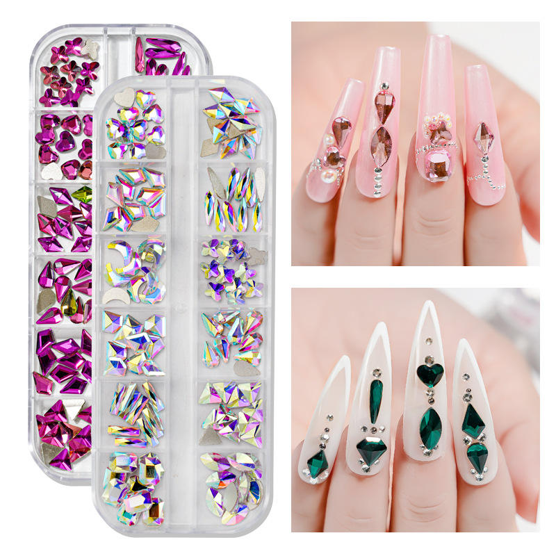 Vendita all'ingrosso nuovi strass di arte del chiodo irregolare fondo piatto per unghie in vetro diamante gioielli accessori per unghie