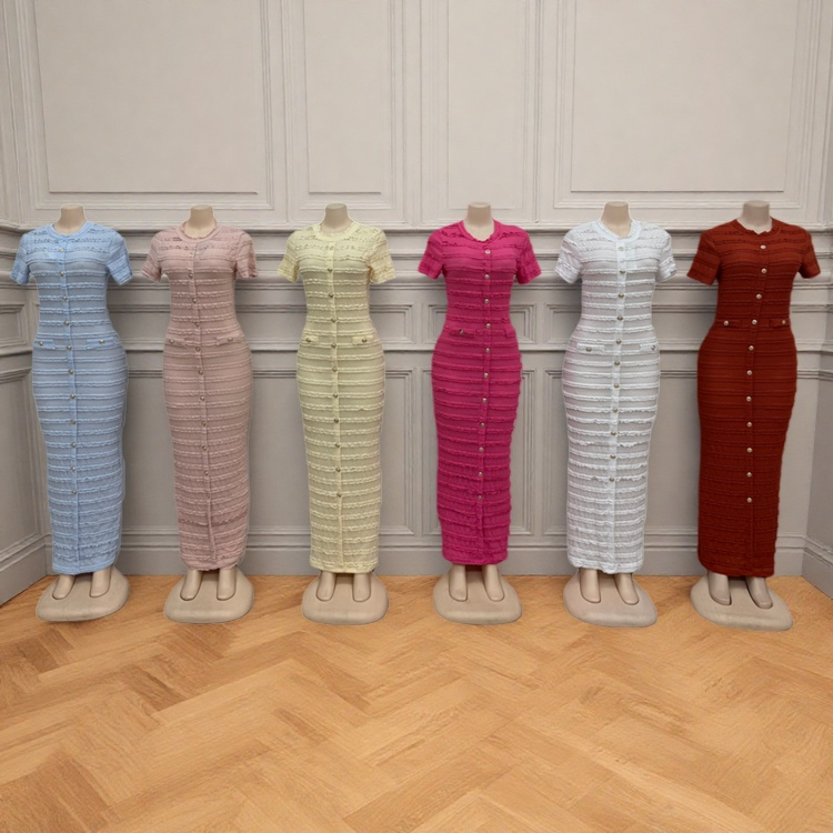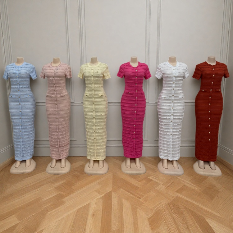 Wholesale New Women Casual Round Neck Elegant Luxury Knitted Short Sleeve Dress