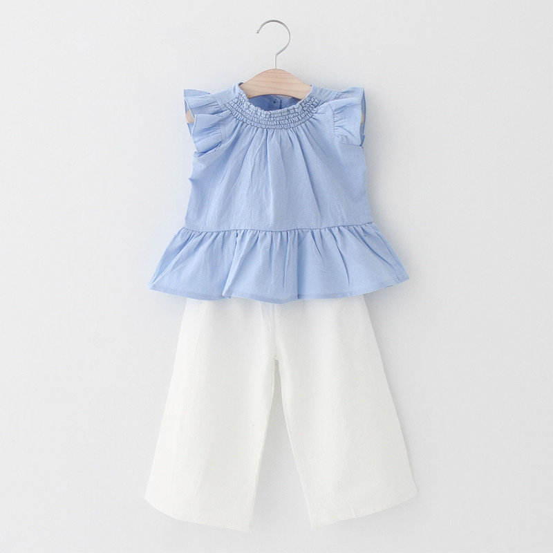 Wholesale Newborn Baby Boys Girls Elegant Clothing Set Kids Blue Top +White Pants for Girls Summer Clothing Set