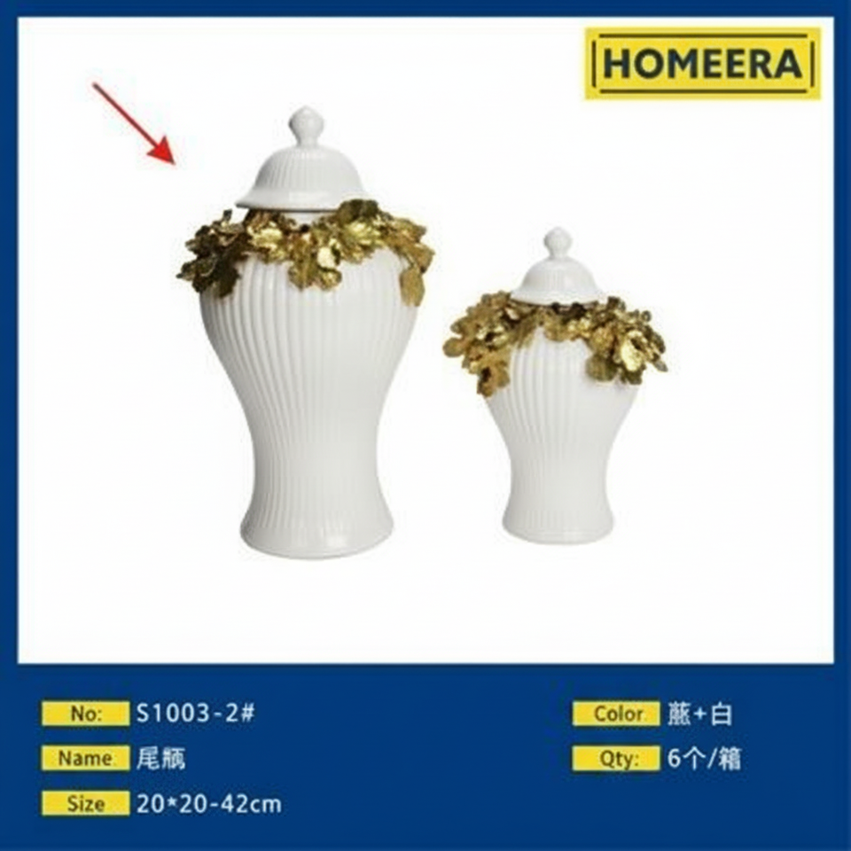 Wholesale Nordic Handmade Ceramic Vase Gold and White 20x20x42cm Art Deco Style Tabletop Decoration for Home Box of 6 Pieces