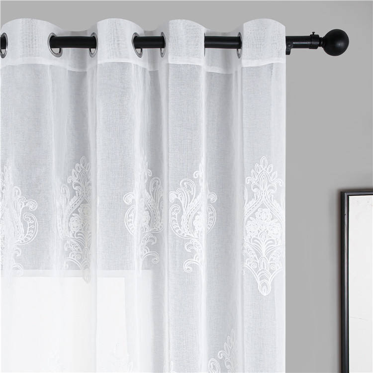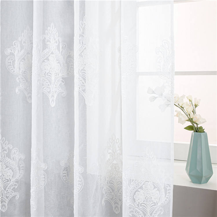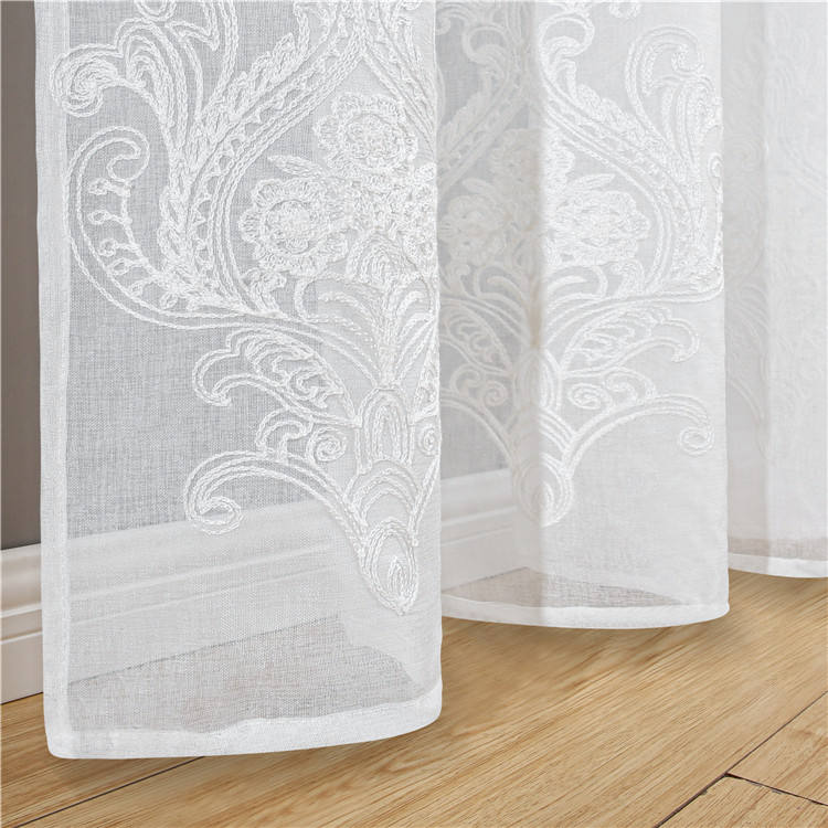 Wholesale Nordic White Flower Plain Polyester Embroidered Upholstery Living Room Sheer Curtain//