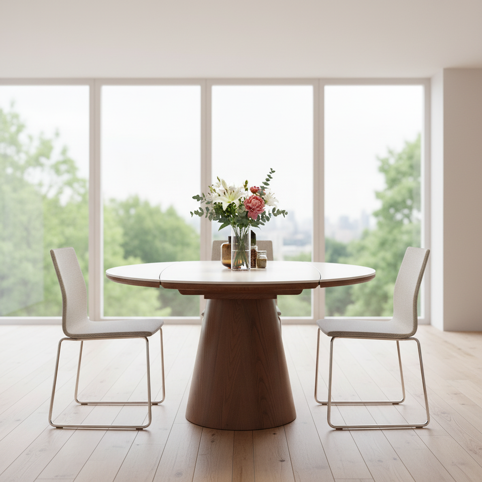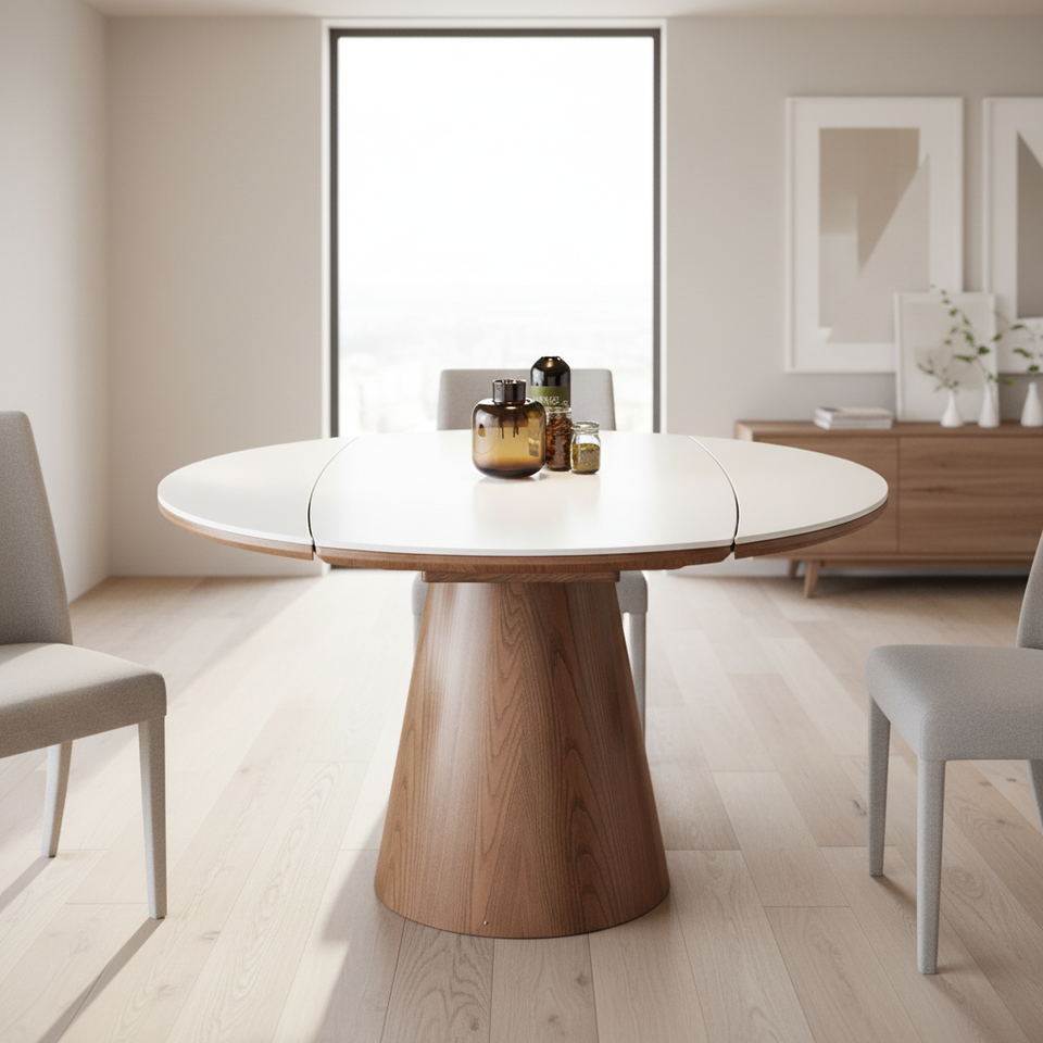 Tavolo da Pranzo Rotondo Estensibile Fatto a Mano, Stile Retrò Nord Europeo, 6 Posti, Ecologico, Durevole e Stabile