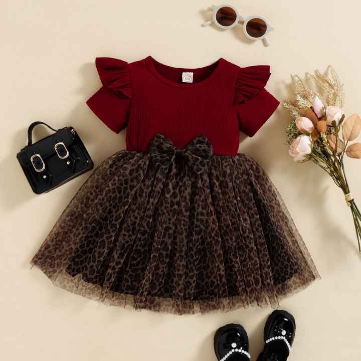 Commercio all'ingrosso ODM OEM a maniche corte a coste cuciture leopardate maglia abito per ragazze estate vestiti per bambini per bambini