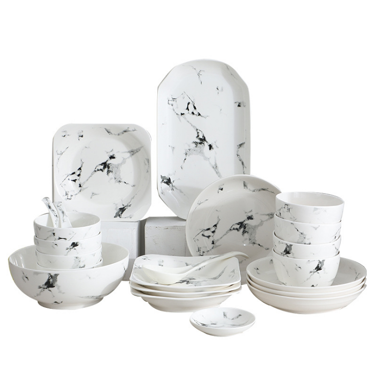 Wholesale OEM Hotel Restaurant Fine Porcelain Plates Banquet Hall Crockery Rustic Dishes Dinnerware Sets