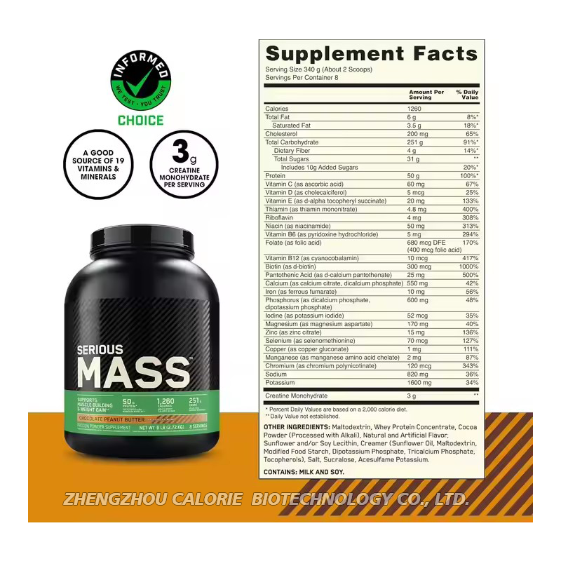 Wholesale OEM Serious Mass Weight Gainer Protein Powder with Vitamin C Zinc & Vitamin D for Immune Support
