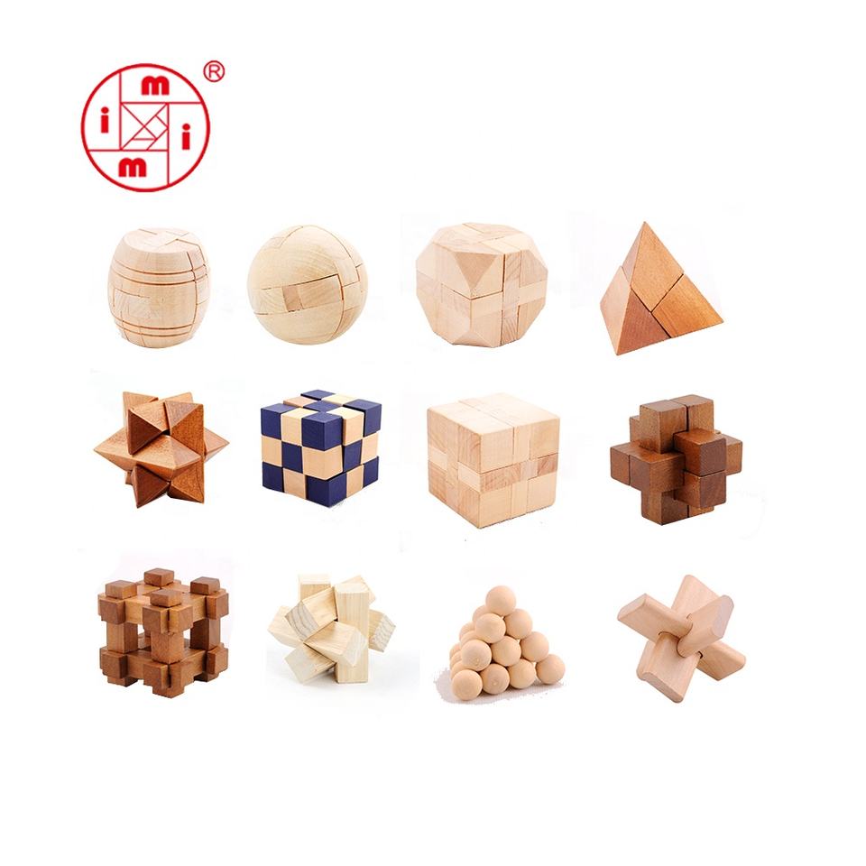 Wholesale OEM Wooden Brain Teaser Iq Wooden Puzzle Cube Eight Trigrams Lock Interlocking Luban Lock for Kid