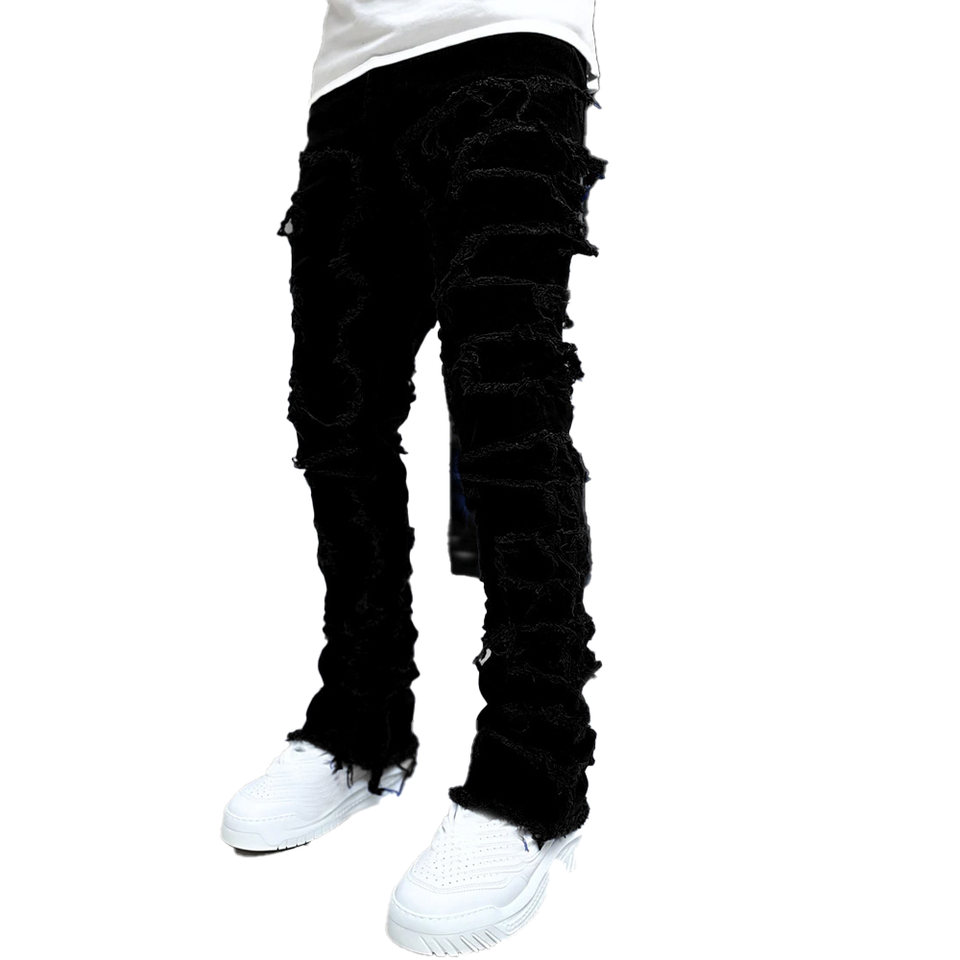 Wholesale Oem Brands Casual Urban Flair OEM Custom Wide Leg Jeans Men's Loose Print Pants Stacked Jeans