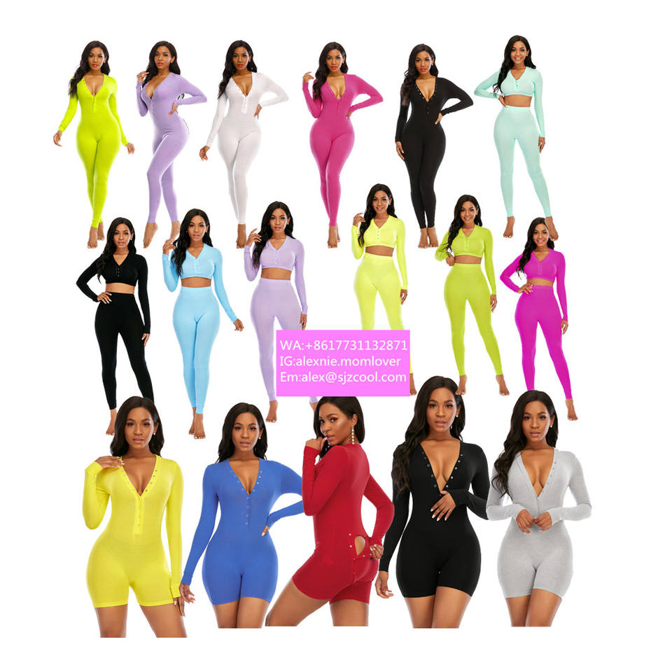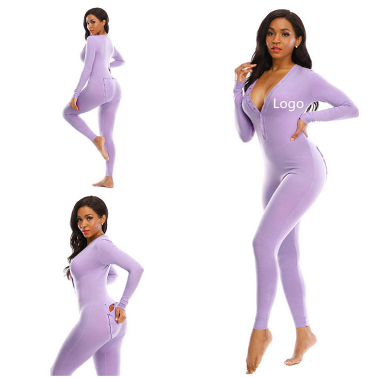 Wholesale Onesie Pyjamas Solid Cotton v Neck Butt Flap Women Onesie Pajamas Plus Size Lavender Custom Long Leg Women Onesie