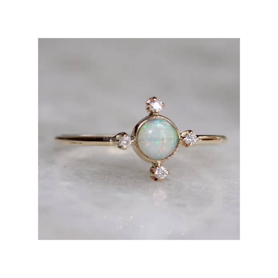 Wholesale Opal & Diamond Engagement Handmade 14k Yellow Gold Gemstone Jewelry