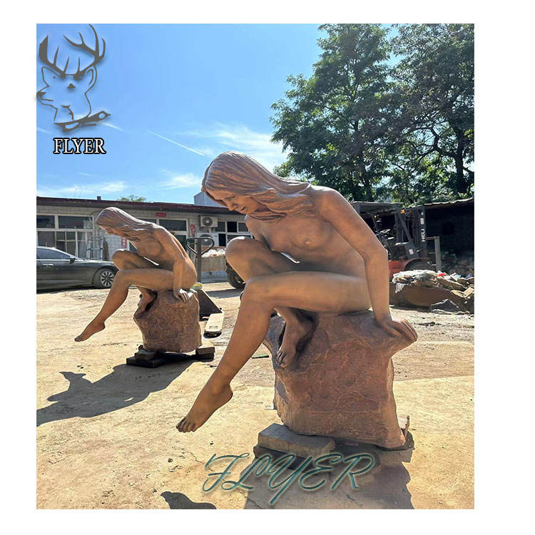 Scultura a Grandezza Naturale di Donna Nuda Seduta, Statua in Bronzo di Signora Bionda, Artigianato Personalizzato in Metallo per Decorazione Esterni e Casa all'Ingrosso