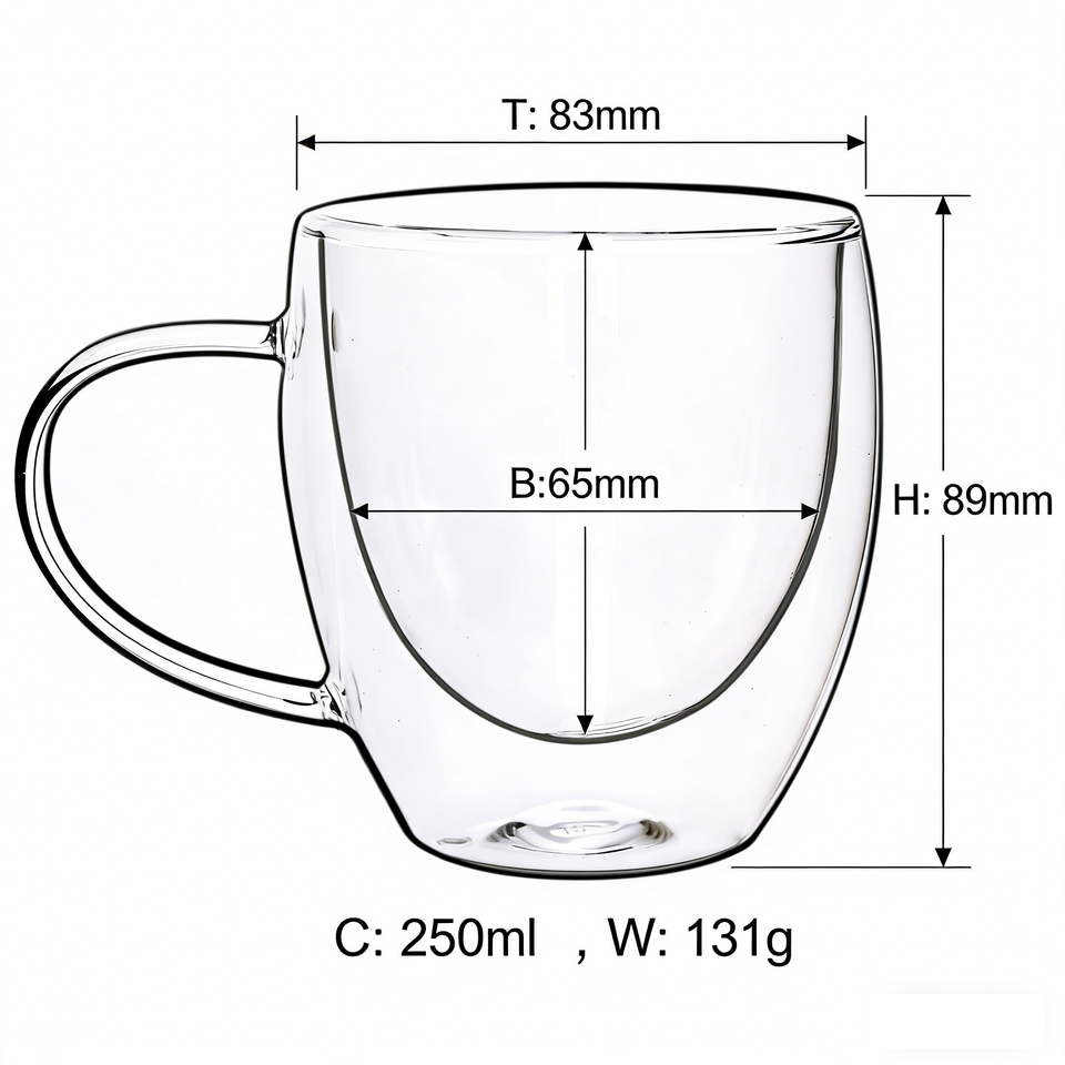 Tazza in Vetro Doppio con Manico, Best Seller Europeo, in Vetro Borosilicato di Alta Qualità per Bevande, Acqua, Tè, Caffè