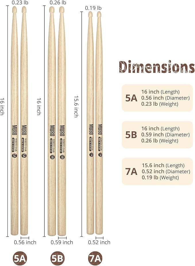 Wholesale PUNK Brand MA-18O Custom Logo Printing Natural Color Music Lover Light 5A/5B/7A White Oak Drum Sticks Set for Music