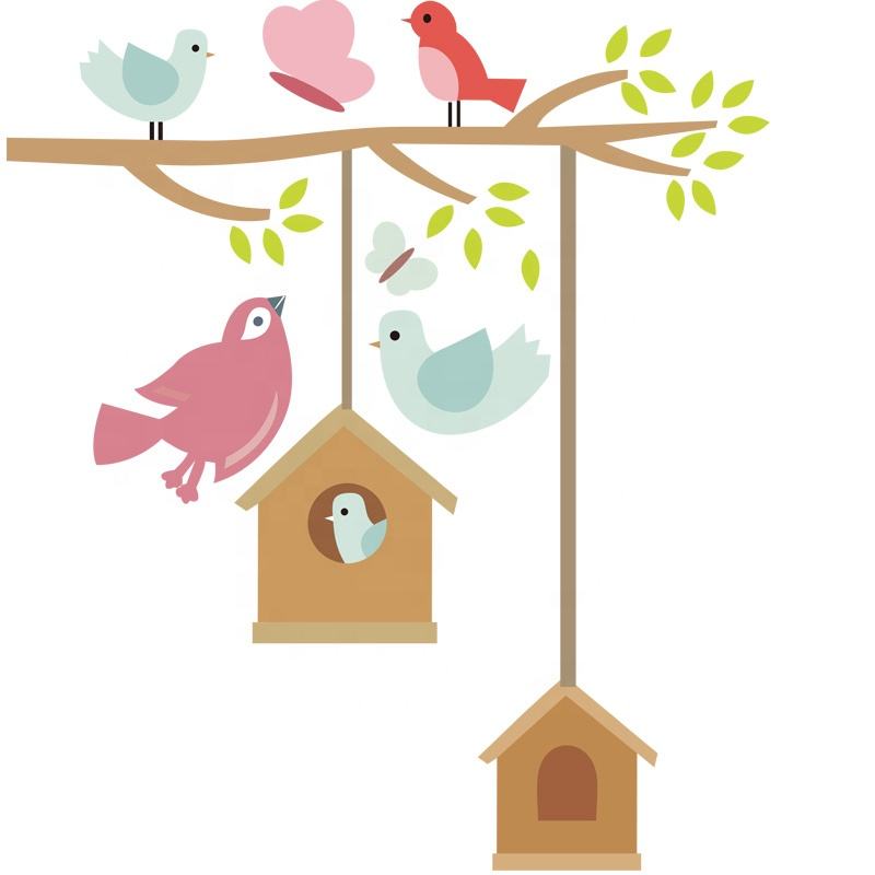 Wholesale PVC Wall Decals Bird's-nest Flowers Tree Birds Butterfly Heart and Flower Wall Stickers for Kids