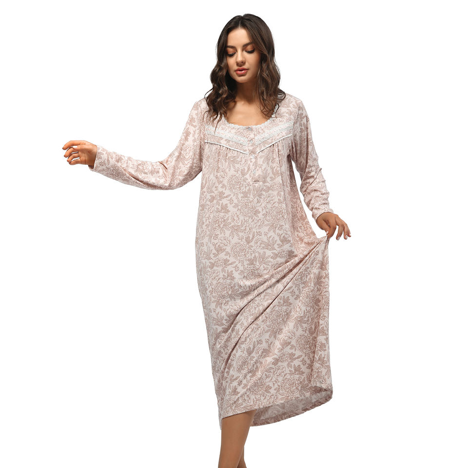 Wholesale Pajamas Cotton Night Dresses Long Sleeve Floral Sleepwear Ladies Pyjama Nightgown for Women
