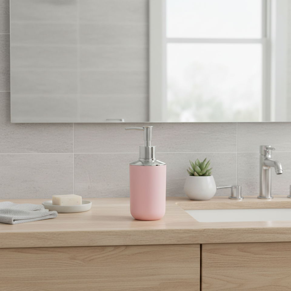 Distributori all'ingrosso di sapone liquido 65x65x175cm flacone di disinfettante per mani rosa PP ABS cromato