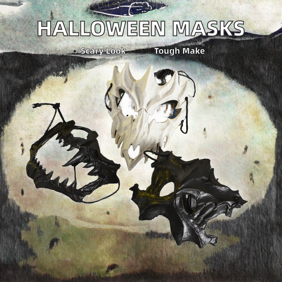 Wholesale Plastic Halloween Monster Masks Tiger Dragon God Yaksha Tengu Terrifying Skull Japanese Anime Full Face