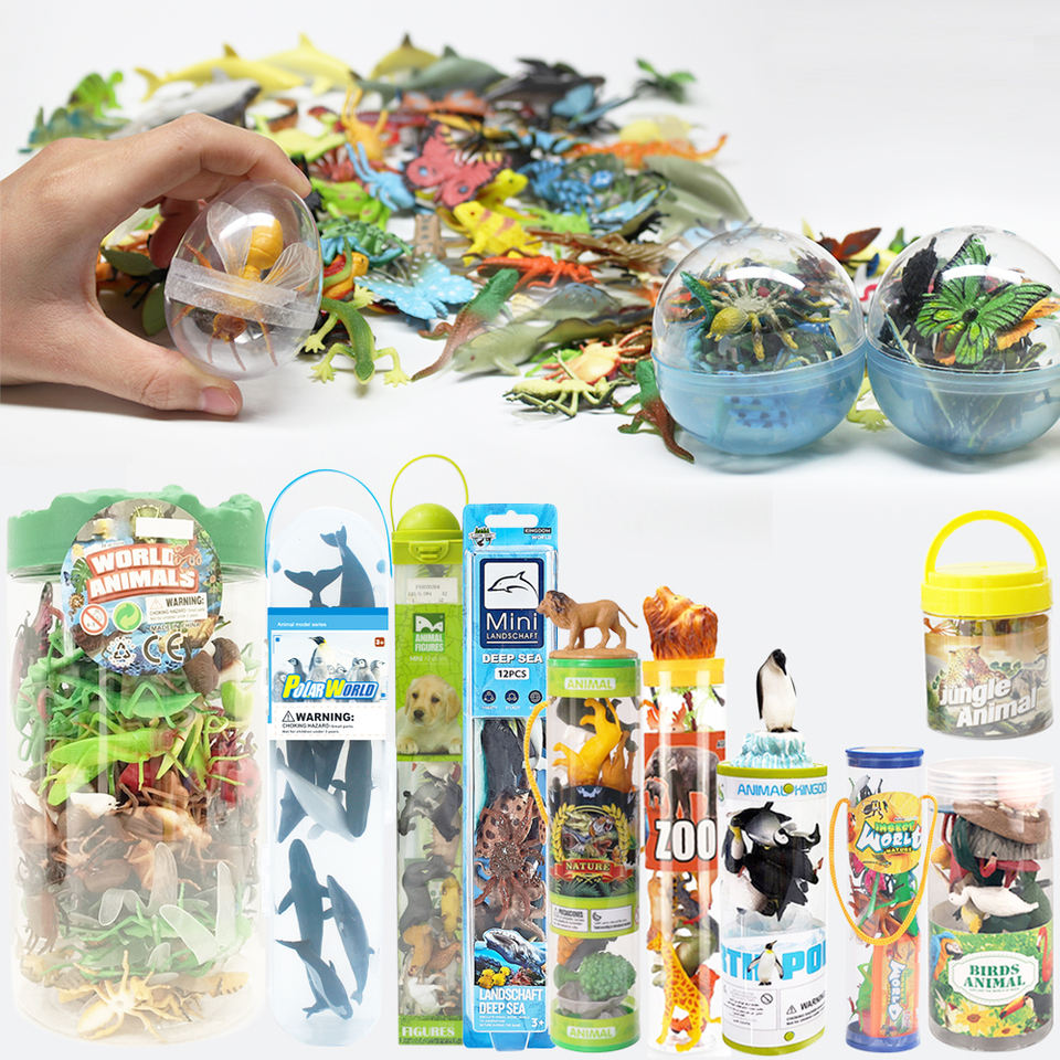 Ingrosso in plastica solido modello di fauna selvatica piccoli animali giocattolo in tubo