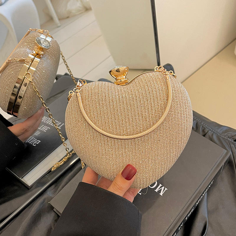 Wholesale Plush Dinner Clutch Bag Women's Luxury Banquet Bag Mini Metal Chain Evening Party Heart Shape Hand Bag Female