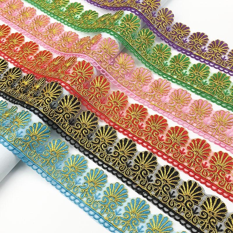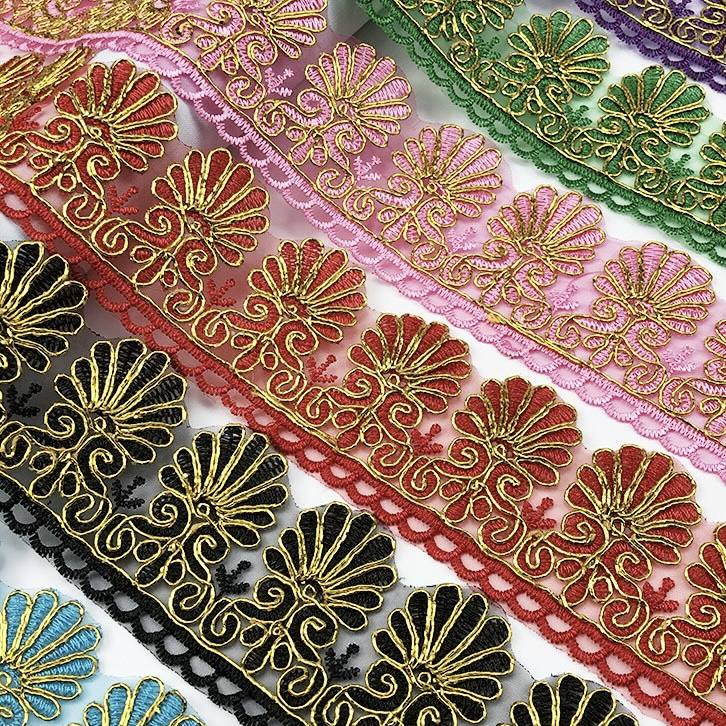 Commercio all'ingrosso in poliestere ricamo oro filo smerlato pizzo rifinitura 6.5cm per matrimonio nuziale Organza tessuto bordino abito