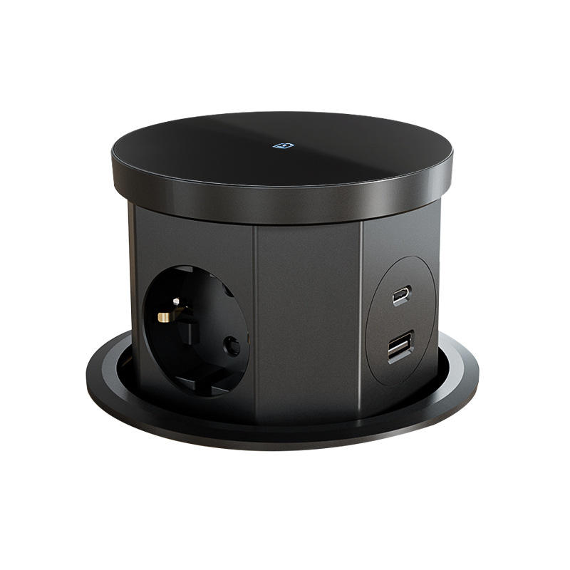 Wholesale Popular EU Hidden Design Kitchen Desktop Pop-up Black Smart Power Socket with Wireless Charging