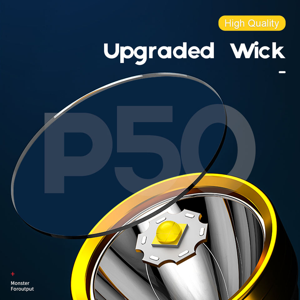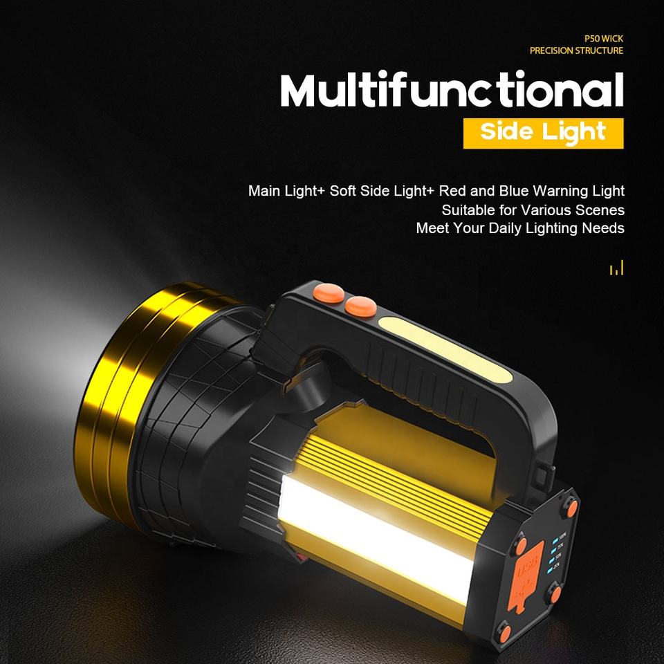 All'ingrosso potente faro USB ricaricabile grande torcia elettrica P50 6 modalità multifunzione torce impermeabili per l'emergenza