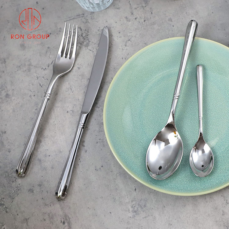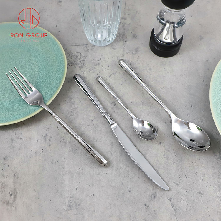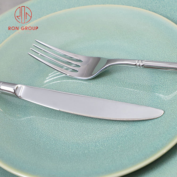 Wholesale Premium Stainless Steel Flat Cutlery Set Delicate Handle Knife Fork Spoon, Food-Grade Durable for Hotel Restaurant