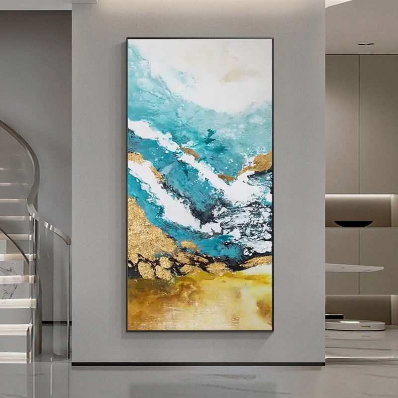 Prezzo all'ingrosso astratto linee di lamina d'oro Poster di arte della parete colorata dipinti da parete di stampa immagini da parete per soggiorno camera da letto