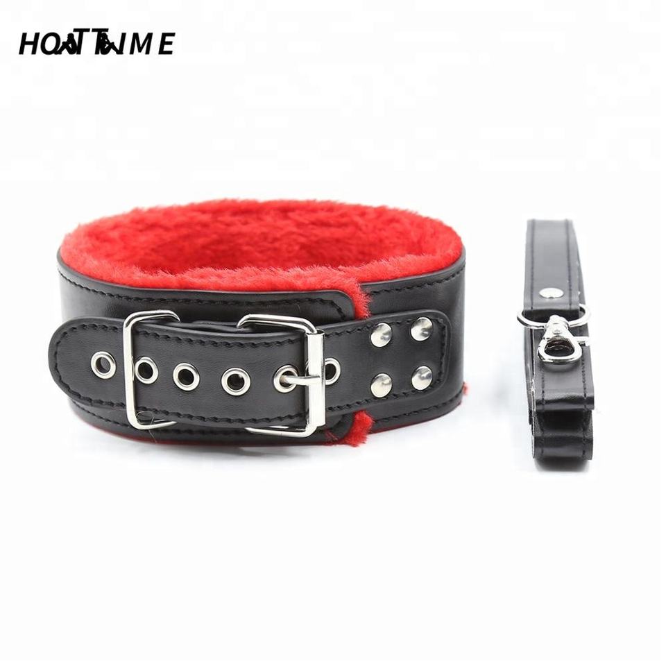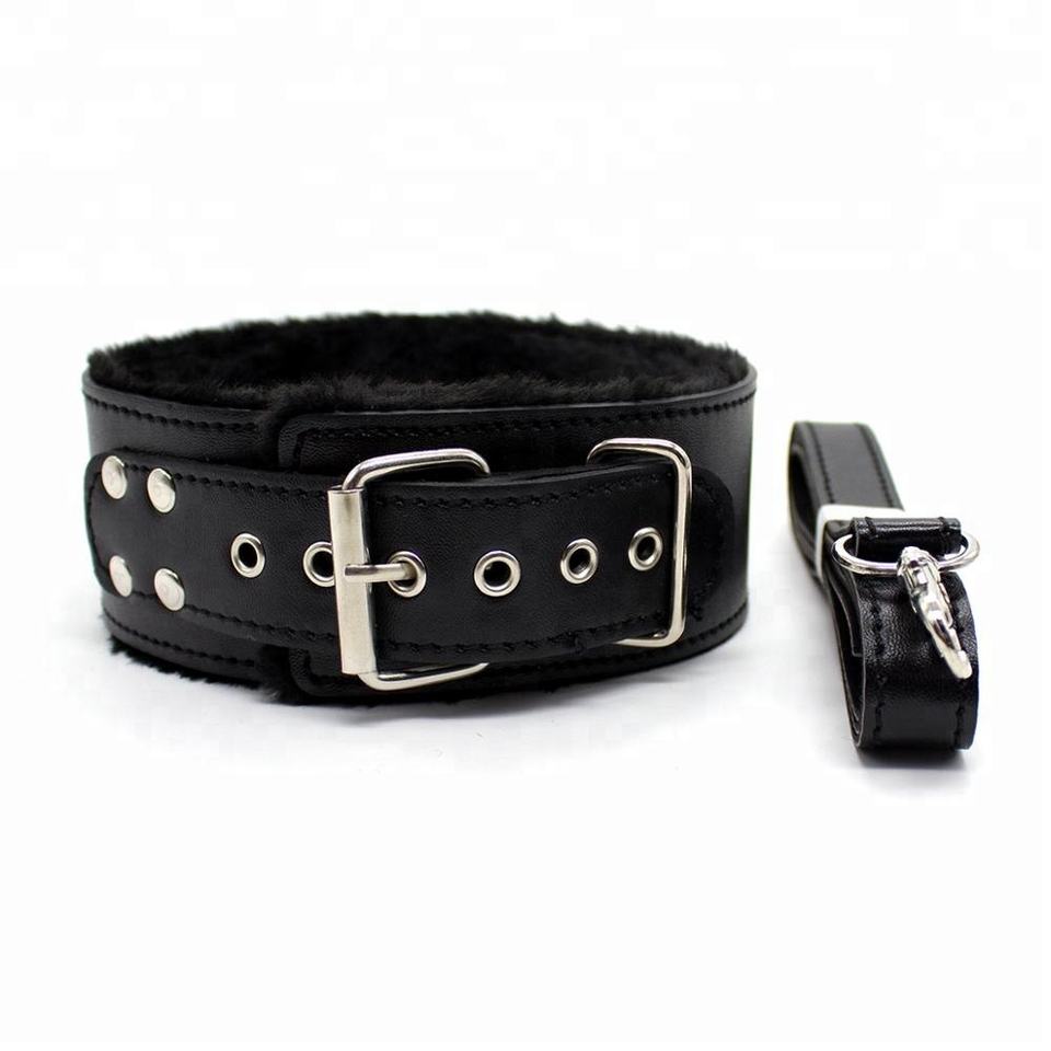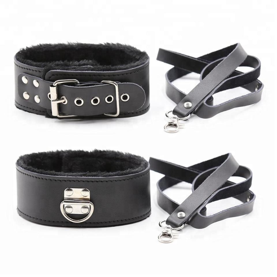 Wholesale Price Adult BDSM Bondage Gear Male Leather Collars with Fur Collar Toys Restraint Collar Sex Toys