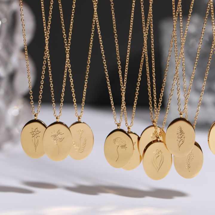 Collana in Acciaio Inossidabile Placcato Oro PVD Resistente allo Sbiadimento, Collana con Fiori dei Dodici Mesi di Compleanno a Prezzo all'Ingrosso