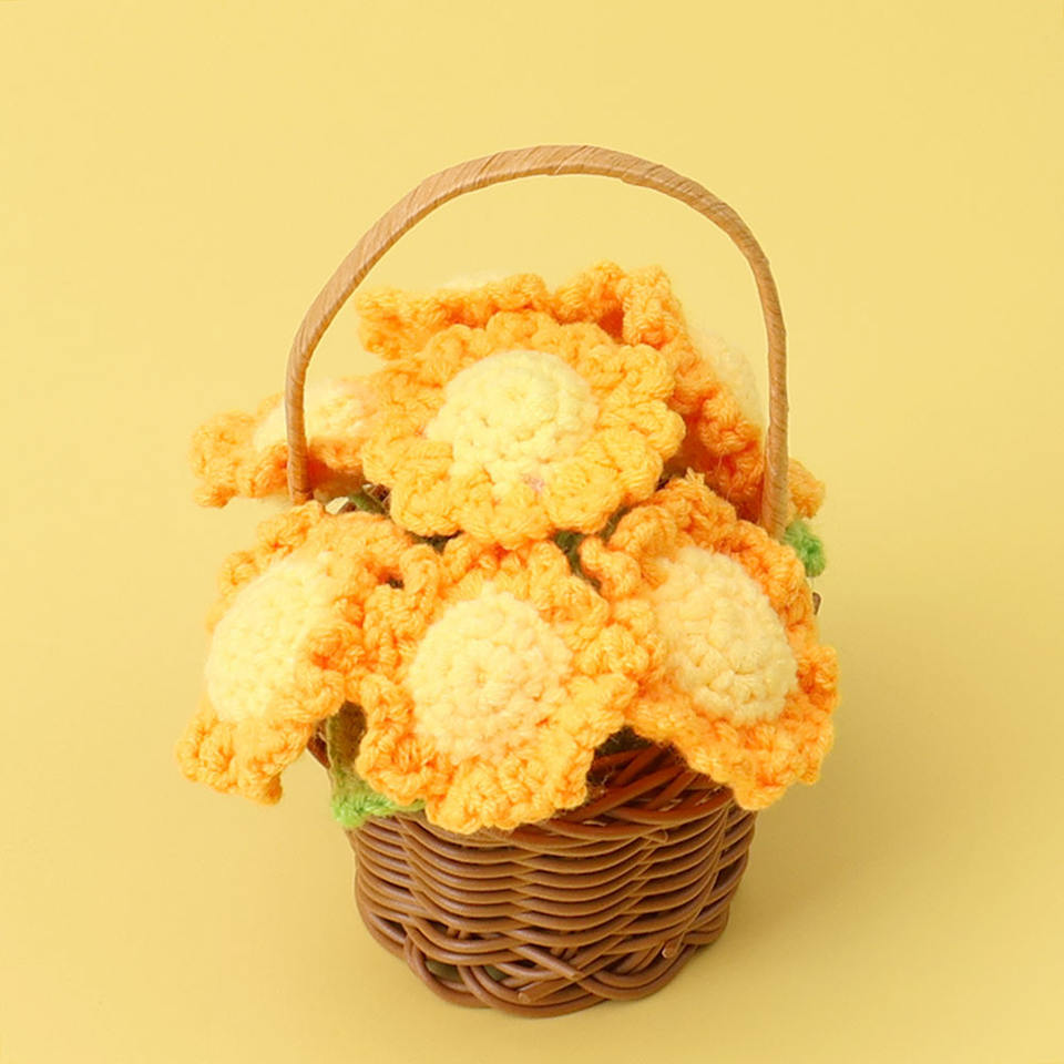 Wholesale Price High Quality Sunflower Crochet Flower Pot Handmade Crochet Flowers in Pot for Graduation Anniversary Birthday