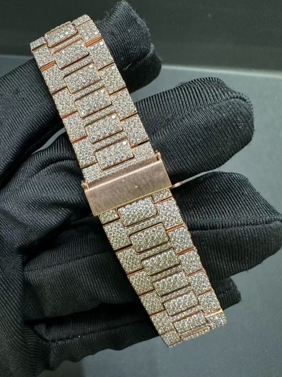 Wholesale Price Men's Mechanical Watch 18K Rose Gold Electroplating Popular VVS Moissanite Dial Display Stainless Steel Band