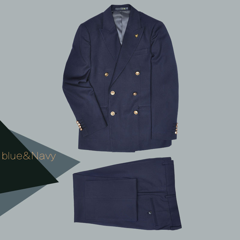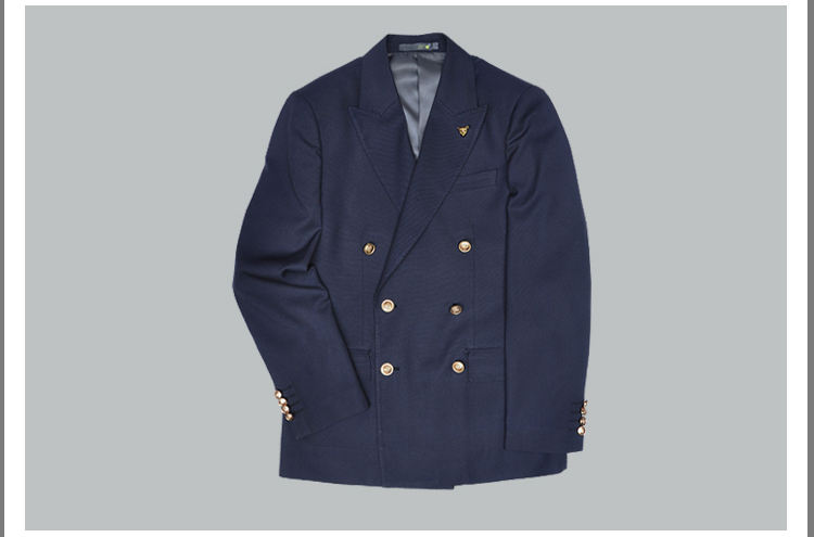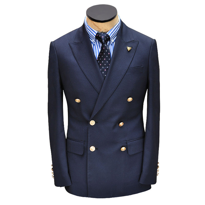 Wholesale Price Navy Blue Men's Slim Fit Business Suit Coat Jacket with Double-Breasted Gold Buckle Elegant Blazer for Men