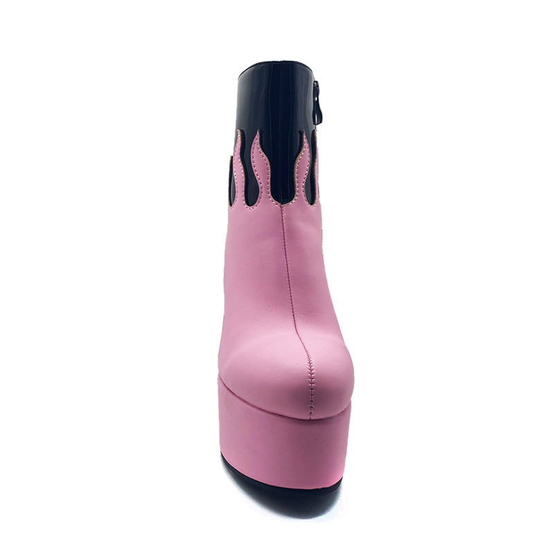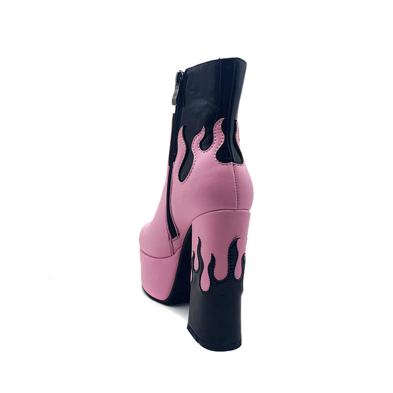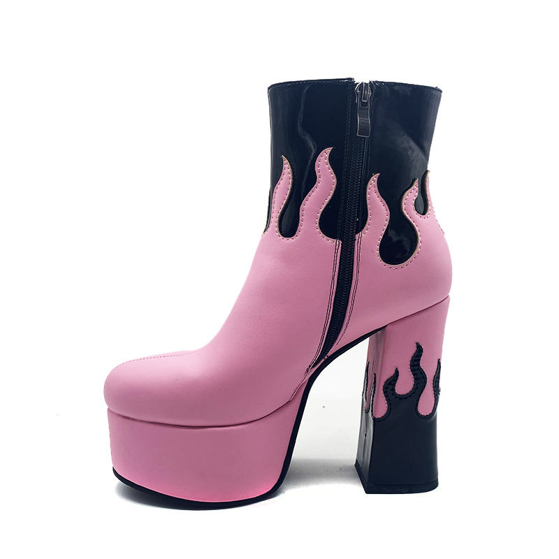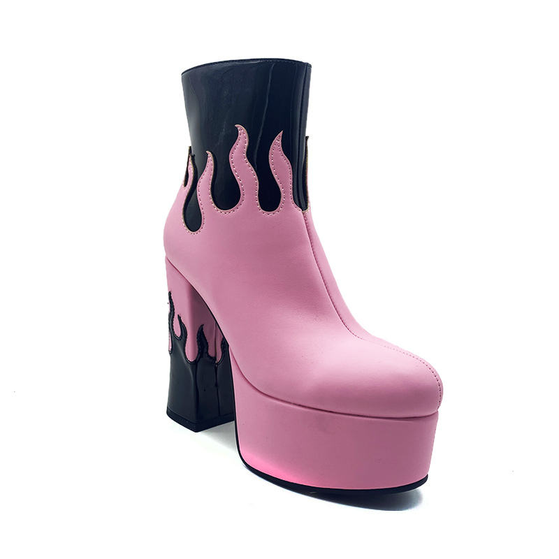 Wholesale Price Shoes Fashion Women Chunky High Heels Boots slip on Flame Pattern Nightclub Shoes Platform Thick Bottom Ladies s