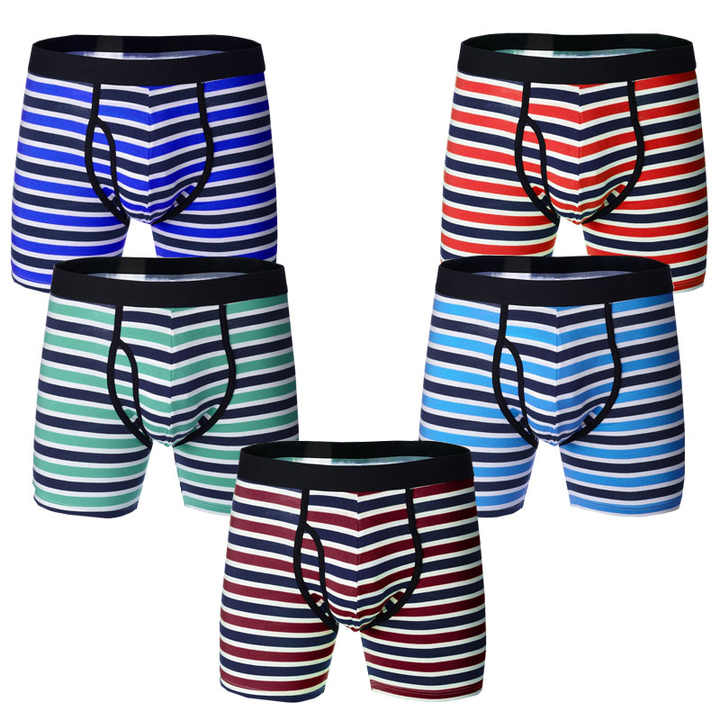 Mutandine con Logo personalizzato a marchio privato all'ingrosso taglie forti 95 cotone 5 Spandex uomo biancheria intima a righe Boxer da uomo