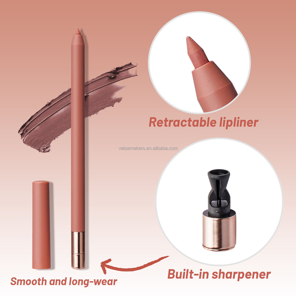 Wholesale Private Label Waterproof Lipliner Matte Nude Pink Lip Liner Pencil With Built in Sharpener
