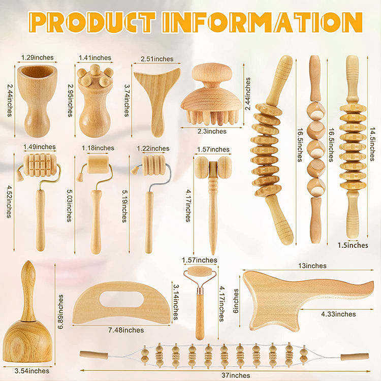 Wholesale Private Logo Wood Massage Therapy Tools Kit for Body Shaping Gua Sha Beauty Personal Care Wooden Massage