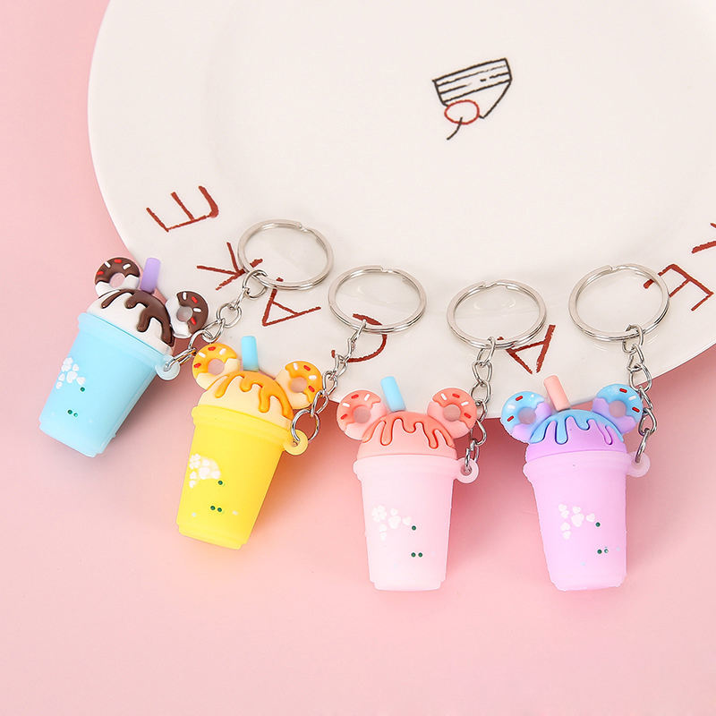 Wholesale Promotional Kids Girls Gifts Cute Lovely 2d 3d Boba Milk Tea Milktea Design Key Chain PVC Silicone Keychain Keyring