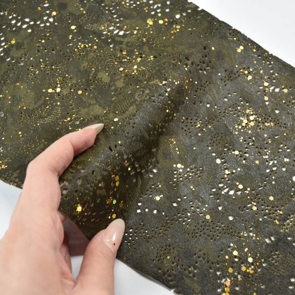 Wholesale Punching Horsehair Leather Material Real Leather Animal Print Materials Cowhide Genuine Leather Fabric for Shoe Bag