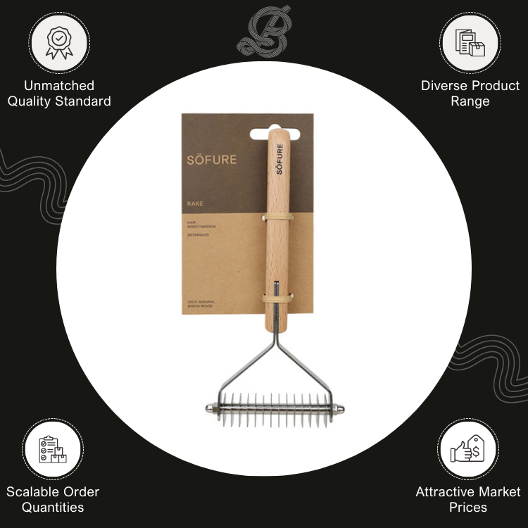 Fornitore all'ingrosso di prodotti per la toelettatura degli animali domestici di buona qualità: Rastrello per cani Sofure in legno di faggio, solo per cani