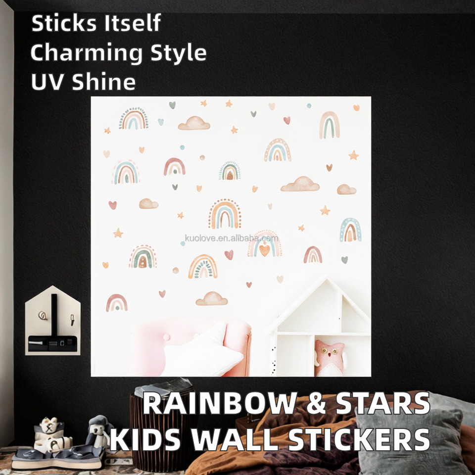 Commercio all'ingrosso arcobaleno stelle e adesivi da parete del sole simpatico cartone animato fai da te carta da parati autoadesiva per soggiorno camera da letto per la decorazione della casa