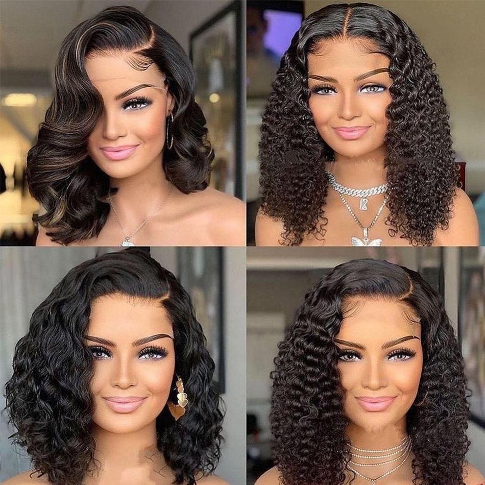 Wholesale Raw Indian Peruvian Hair Short BOB Wigs with Bangs, HD Glueless Full HD 13*6 Lace Closure Frontal Wigs for Black Women