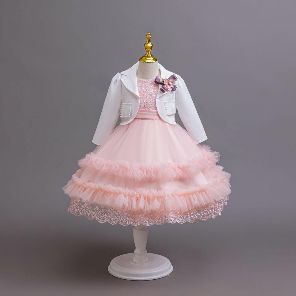 Commercio all'ingrosso Ready Stock 3 pezzi Set Tulle abito gonfio con giacca e borsa per bambini ragazze festa di compleanno vestito
