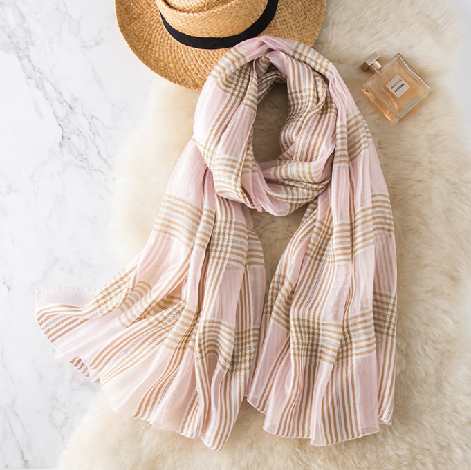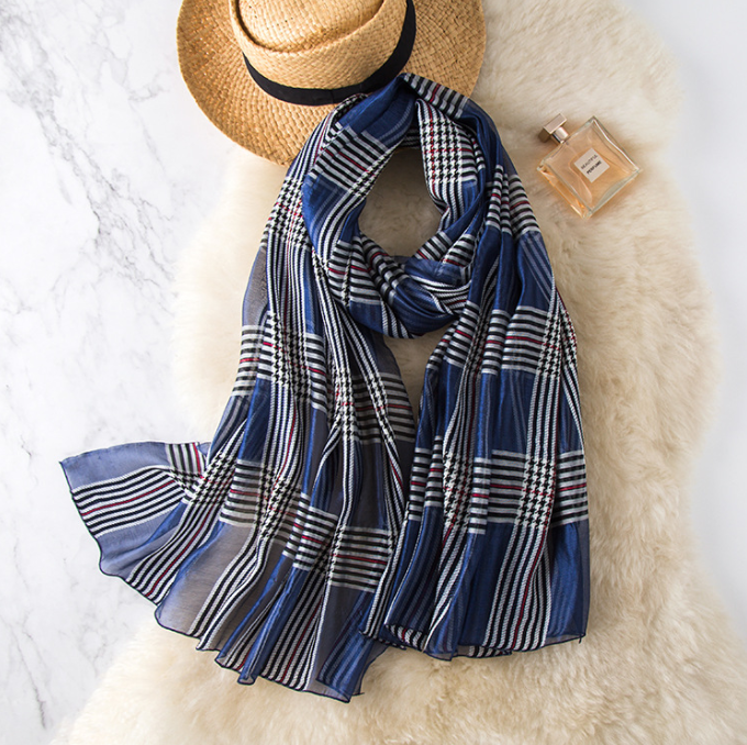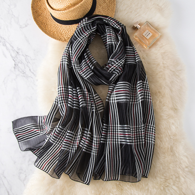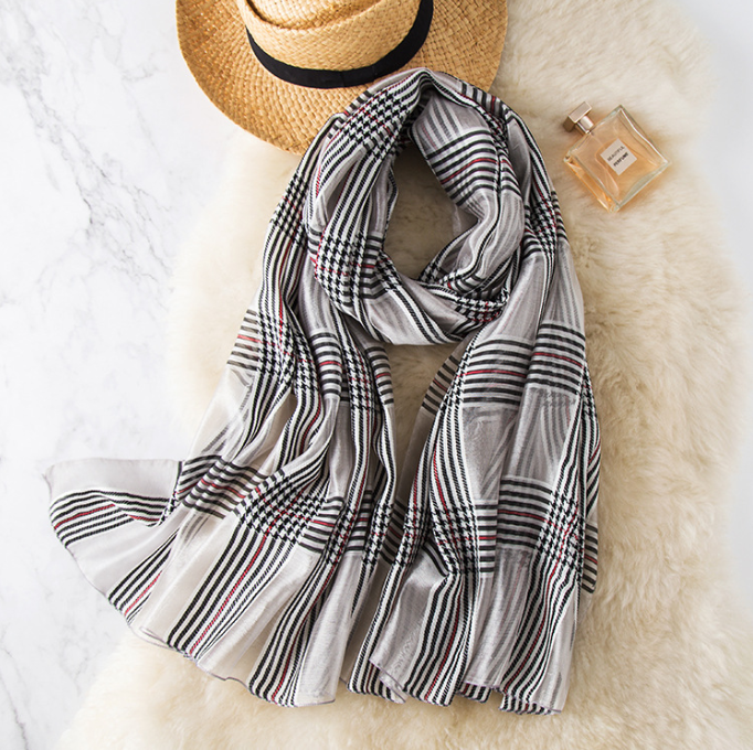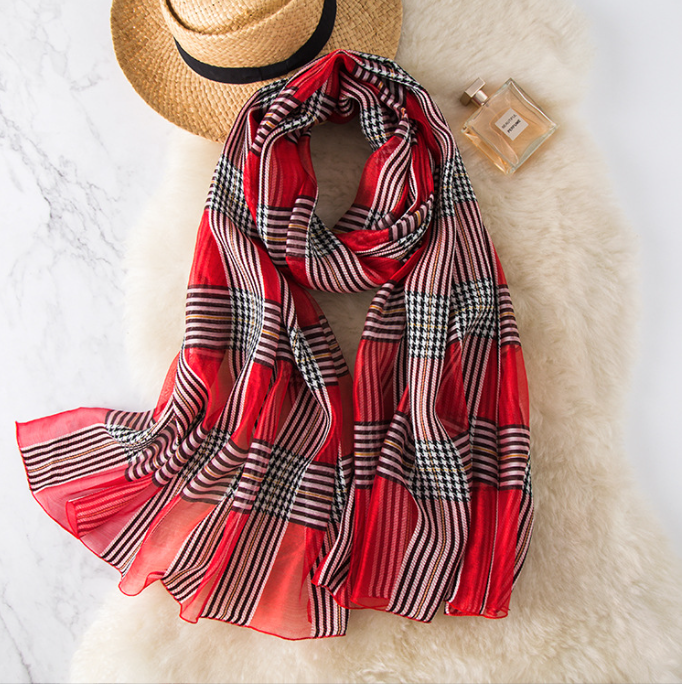 Wholesale Red Silk Scarves Hijabs Shawls Spring Plaid Silk Scarf British Style Checked Silk Hijab Scarf for Women