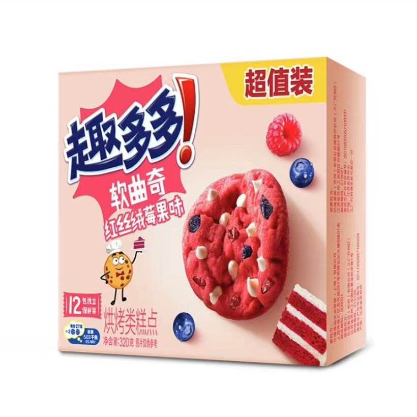 Ingrosso rosso velluto bacca morbida biscotti 320g scatola di spuntini esotici Casual sapore dolce nuovo imballaggio