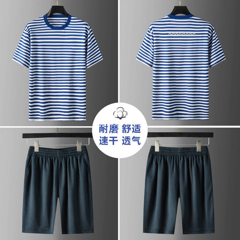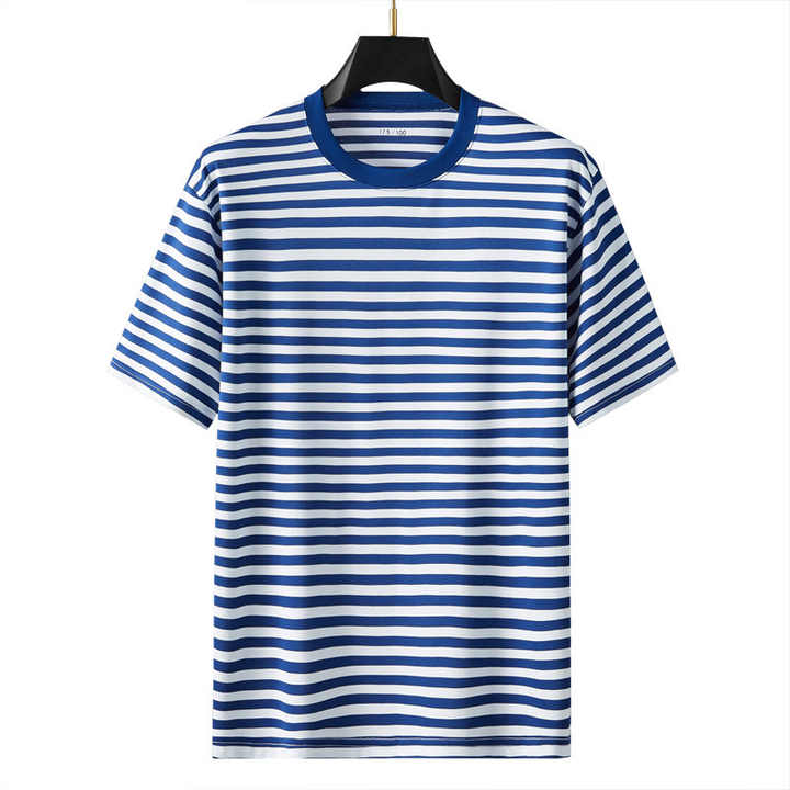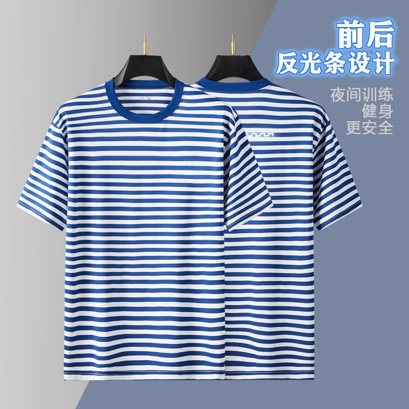 Camicia a Righe Blu Navy Riflettente all'Ingrosso Completo Camicia a Righe Blu e Bianche Abbigliamento Sportivo Estivo per Studenti T-shirt a Maniche Corte