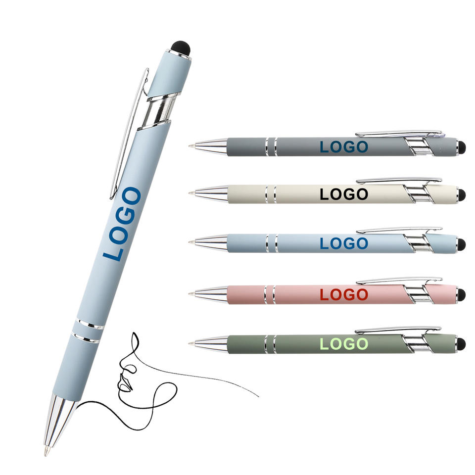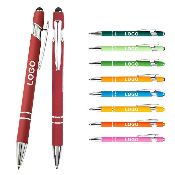 Penne a Sfera Retrattili in Metallo Alluminio all'Ingrosso, Colori Assortiti, Stilo per Touchscreen con Stampa Logo e Impugnatura Gommata