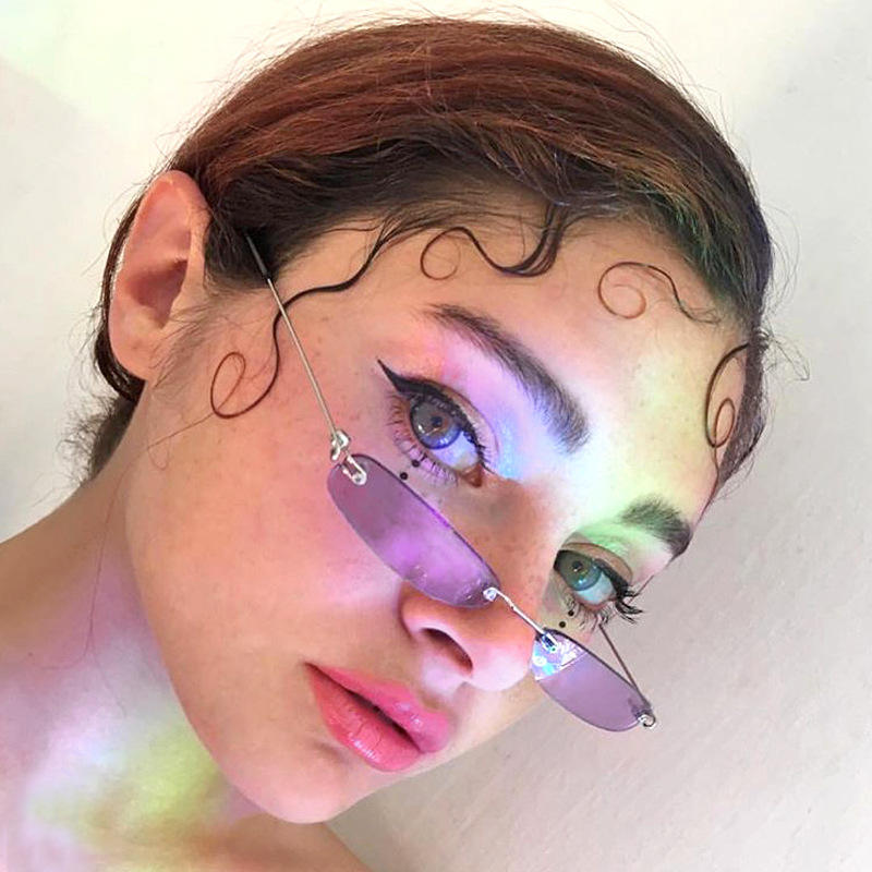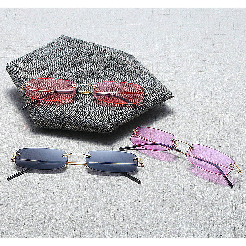 Commercio all'ingrosso retrò uomo donna struttura in metallo rosso viola giallo occhiali da sole UV400 Rimless Mini rettangolari occhiali da sole uomo donna