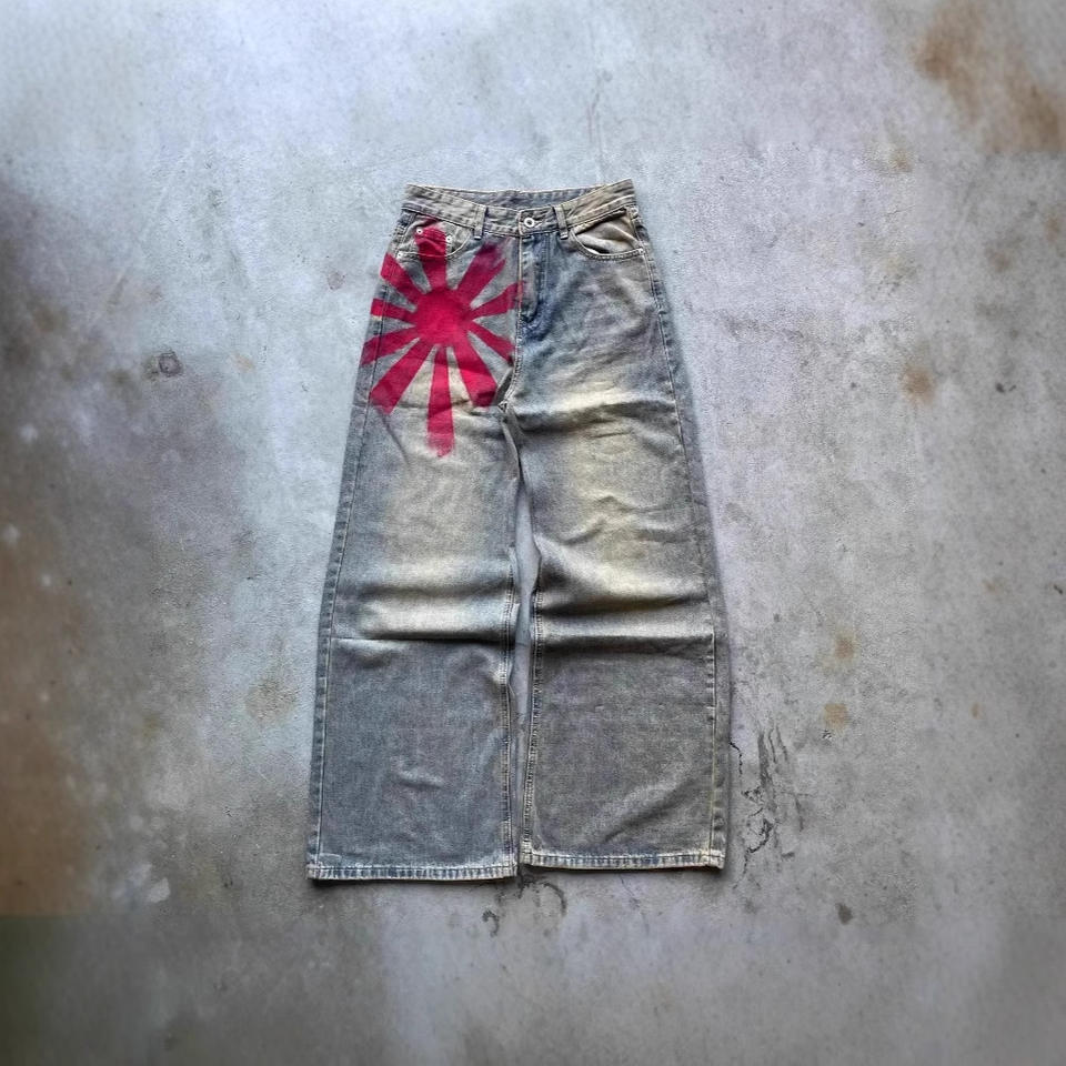 Pantaloni in Denim a gamba larga da uomo all'ingrosso stile retrò Vintage Design di nicchia Jeans traspiranti larghi a vita media lavabili